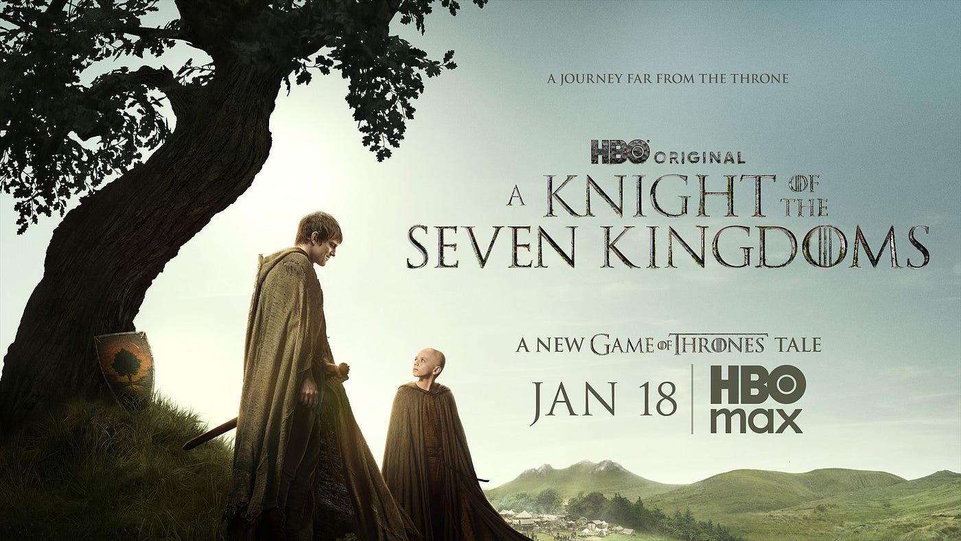 The show A Knight of the Seven Kingdoms is based on George R.R. Martin’s novella The Hedge Knight, which was the first of three stories that were later published as one book with the title (you guessed it) A Knight of the Seven Kingdoms. This, and the other stories, titled The Mystery Knight and The Sworn Sword, deal with the characters Dunk and Egg, set in the world of A Song of Ice and Fire for the purists, or A Game of Thrones world for you TV enthusiasts.